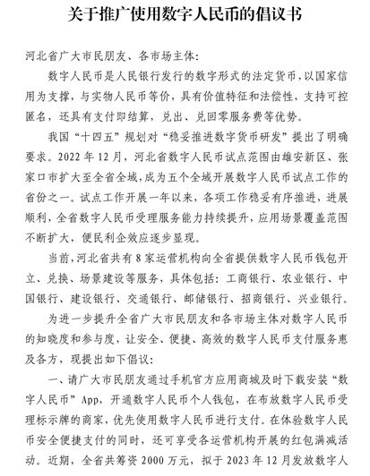 轉發“關于推廣使用數字人民幣的倡議書”
