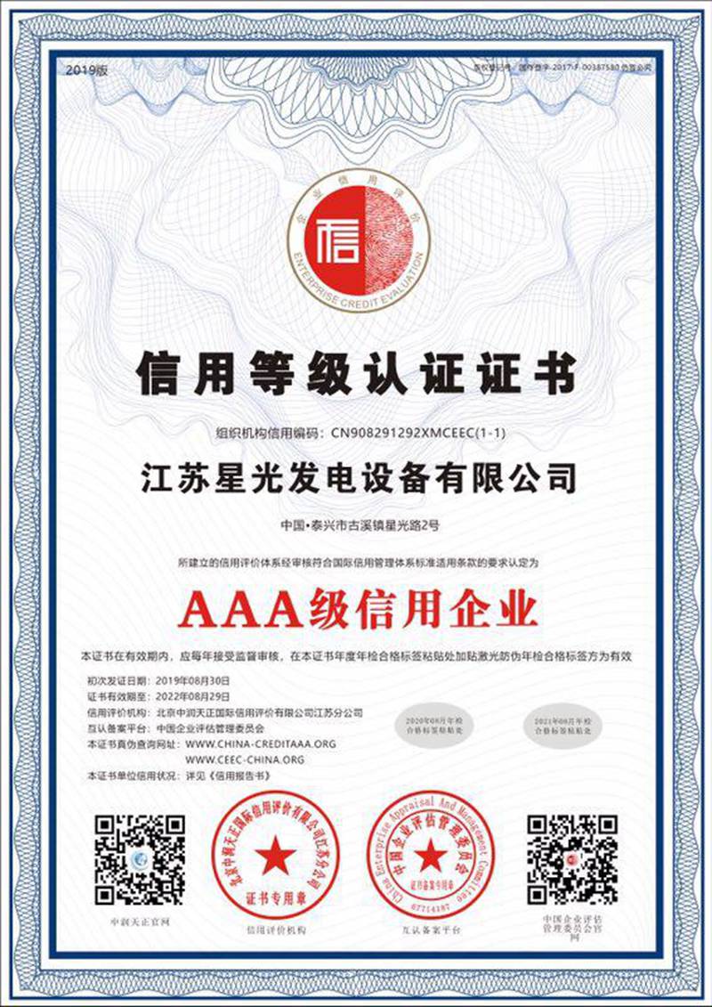 AAA級信用等級認(rèn)證證書