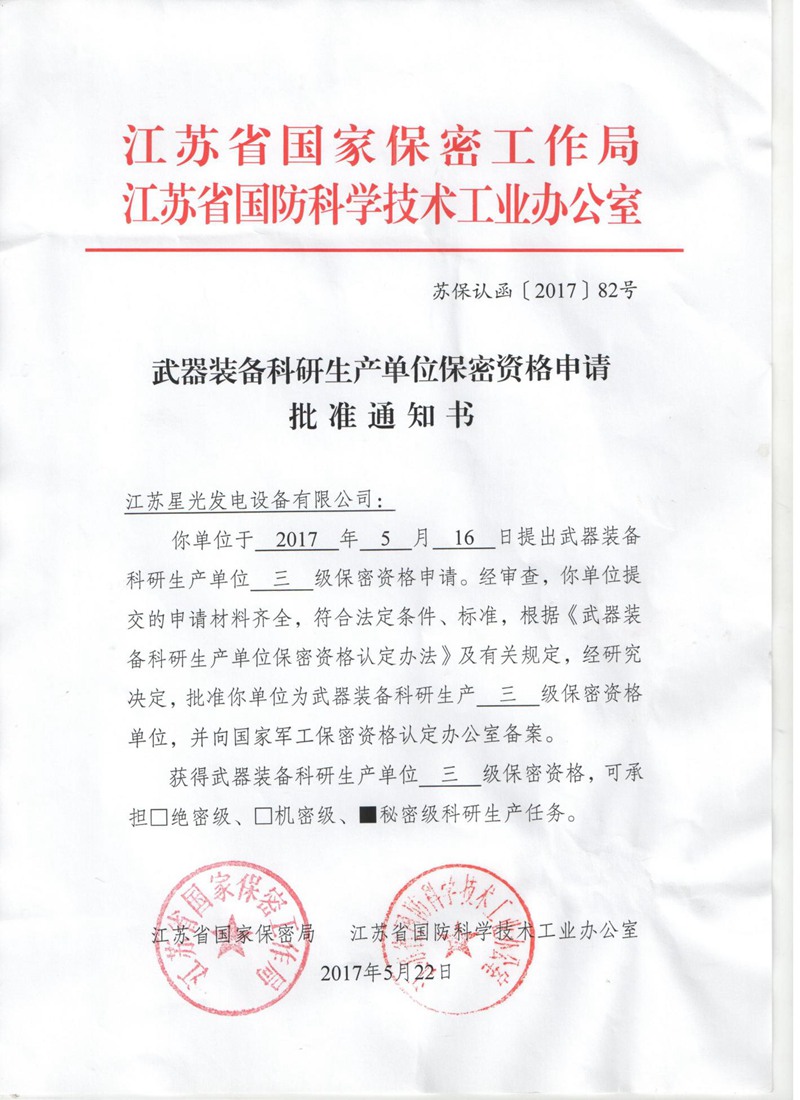保密資格證明及證書